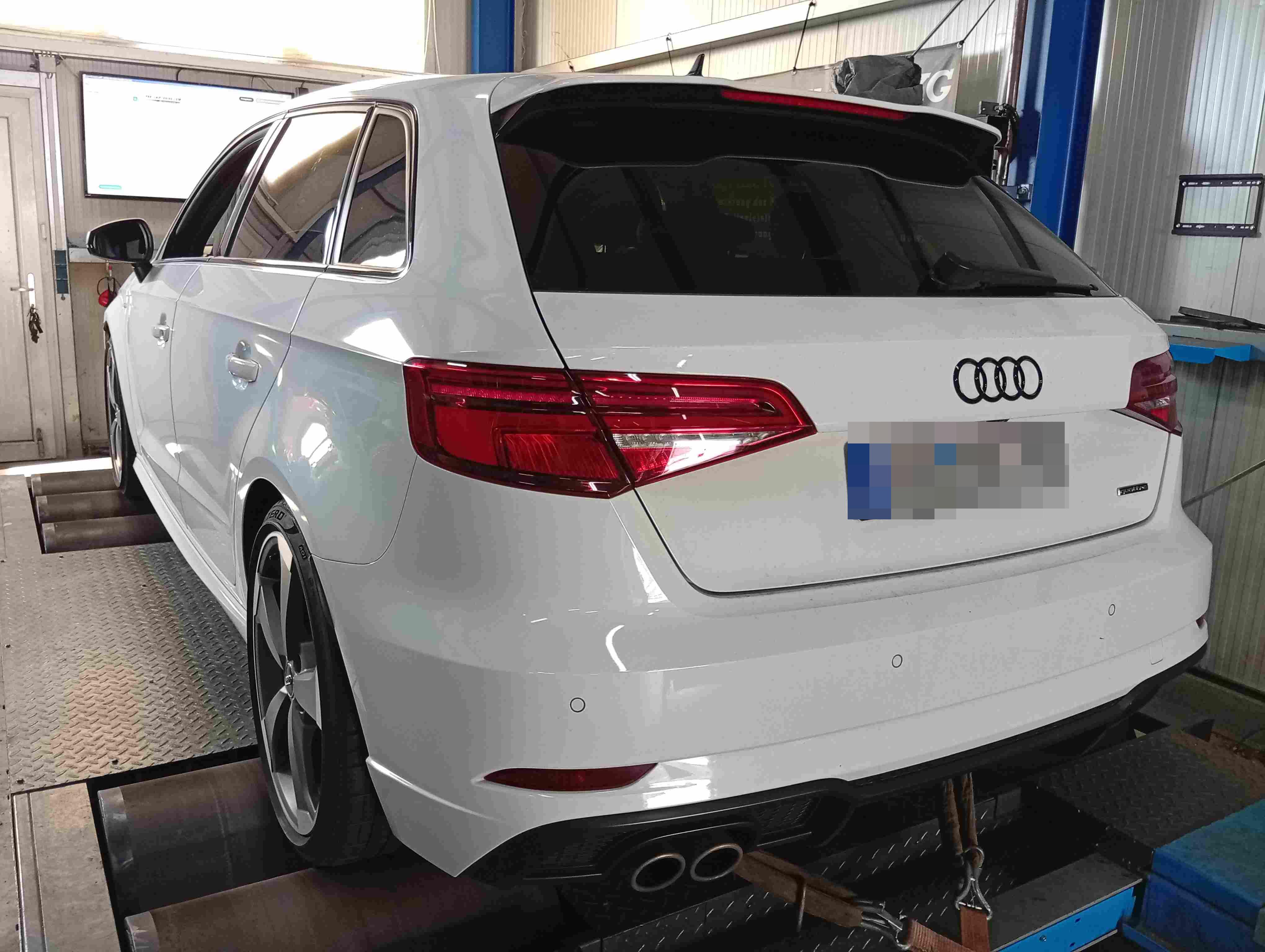 Leistungssteigerung für diesen Audi A3 8V - 2.0 TFSI (Baujahr 2019). Der DKZ - Motor leistet 190 PS (320 NM Drehmoment) im Serienzustand / Werksangabe.