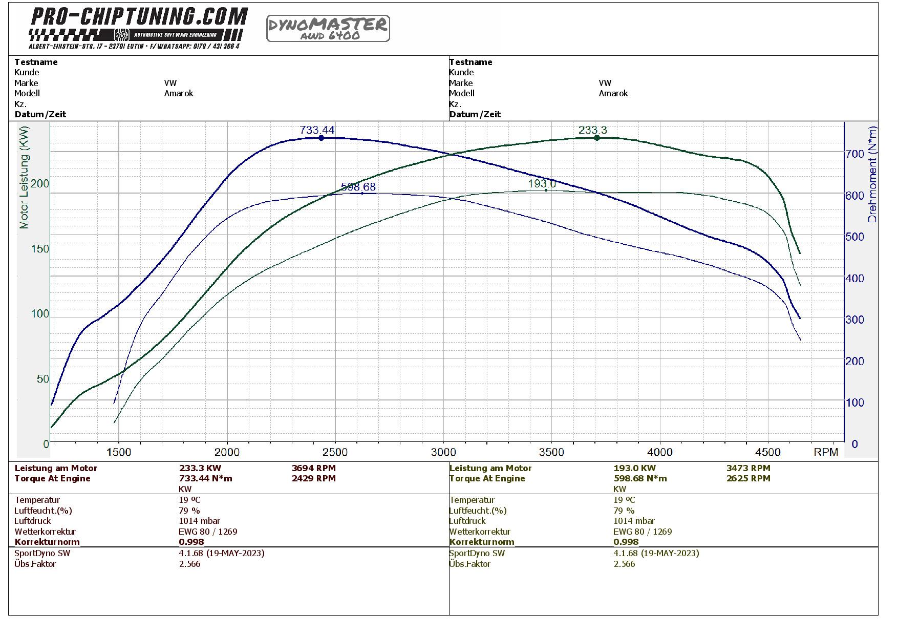 Leistungssteigerung für diesen VW Amarok - 3.0 TDI CR (Baujahr 2019). Der DDXE - Motor leistet 258 PS (580 NM Drehmoment) im Serienzustand / Werksangabe.