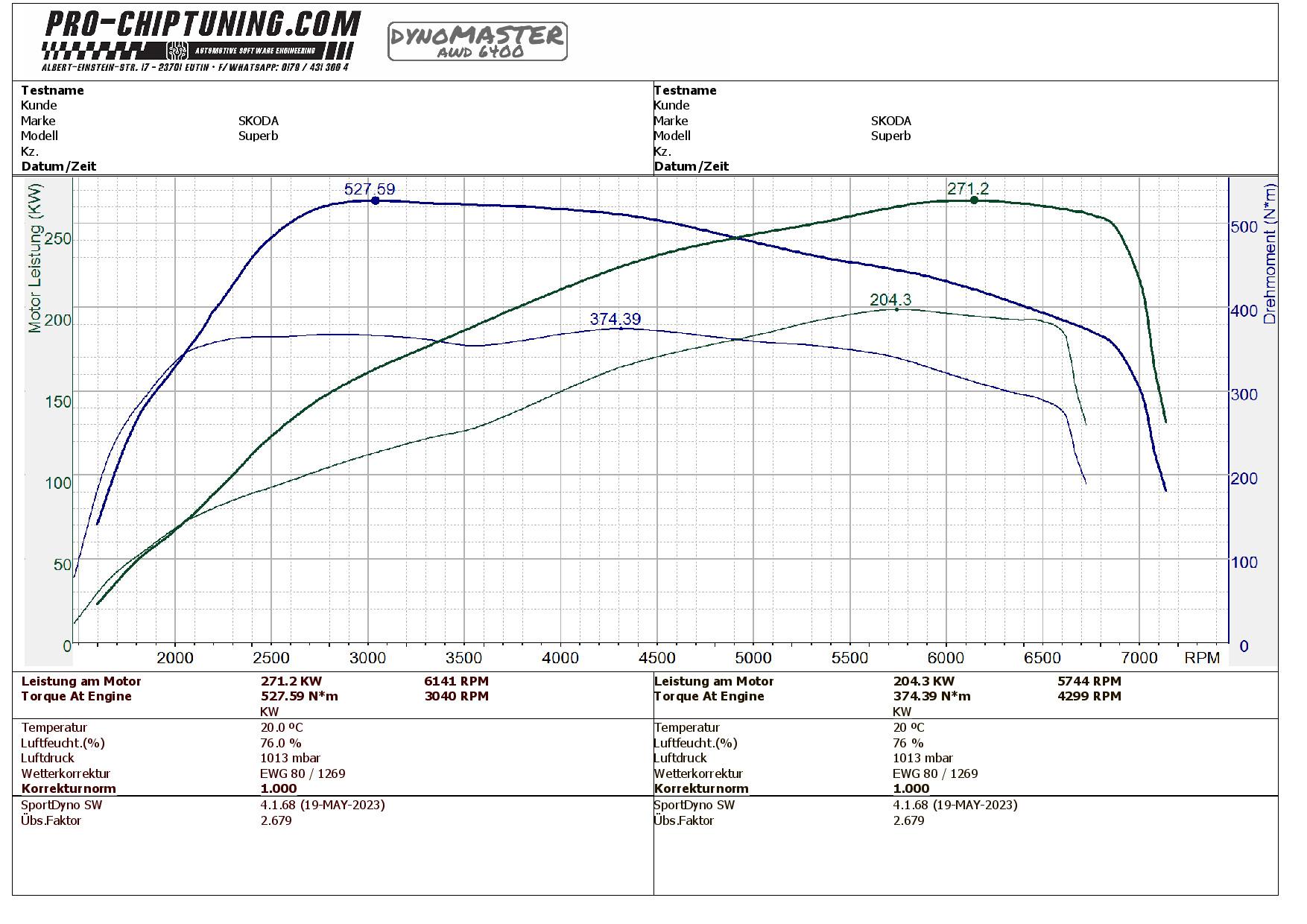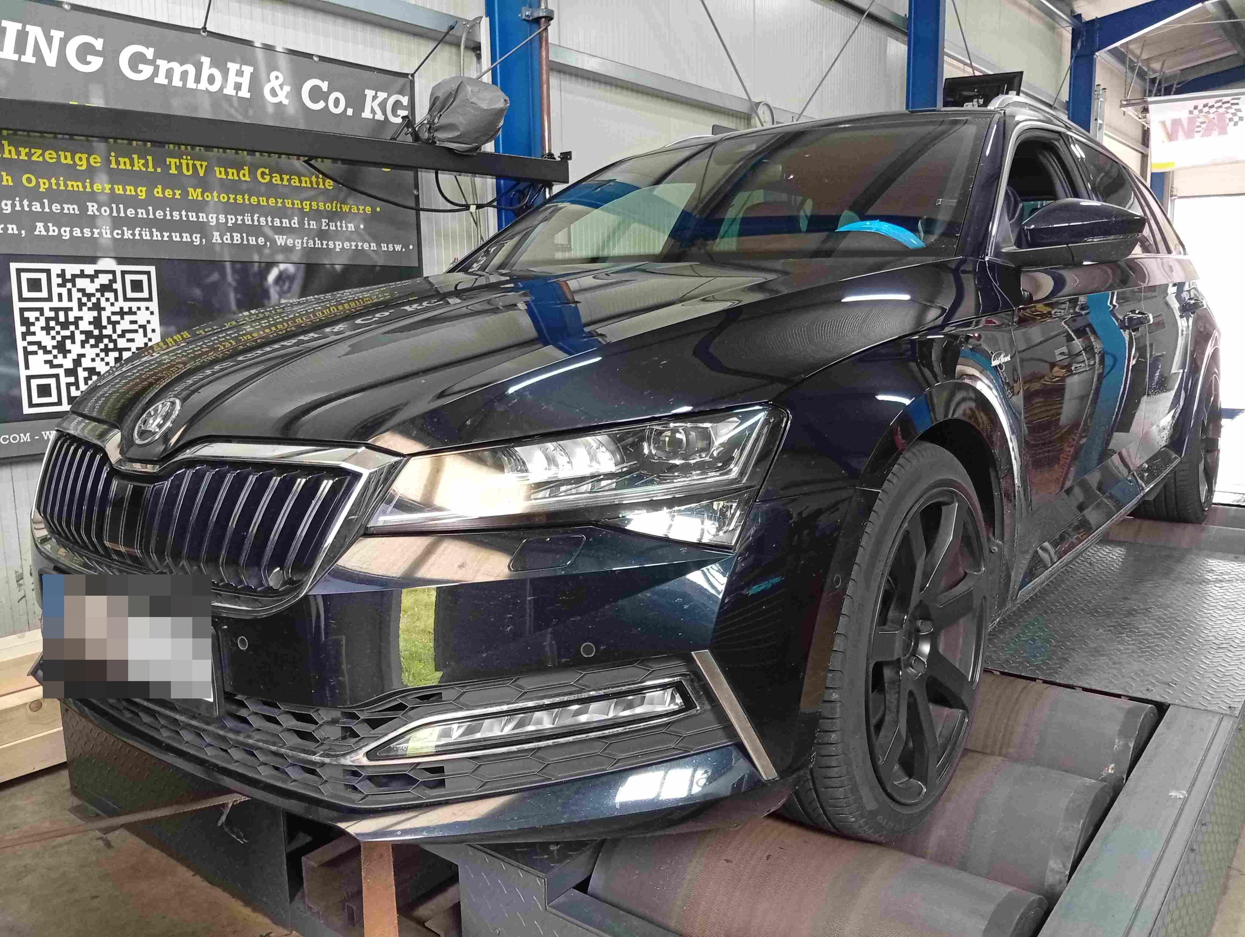 Leistungssteigerung für diesen Skoda SUPERB - (Baujahr 2020). Der DNU - Motor leistet 272 PS (350 NM Drehmoment) im Serienzustand / Werksangabe.