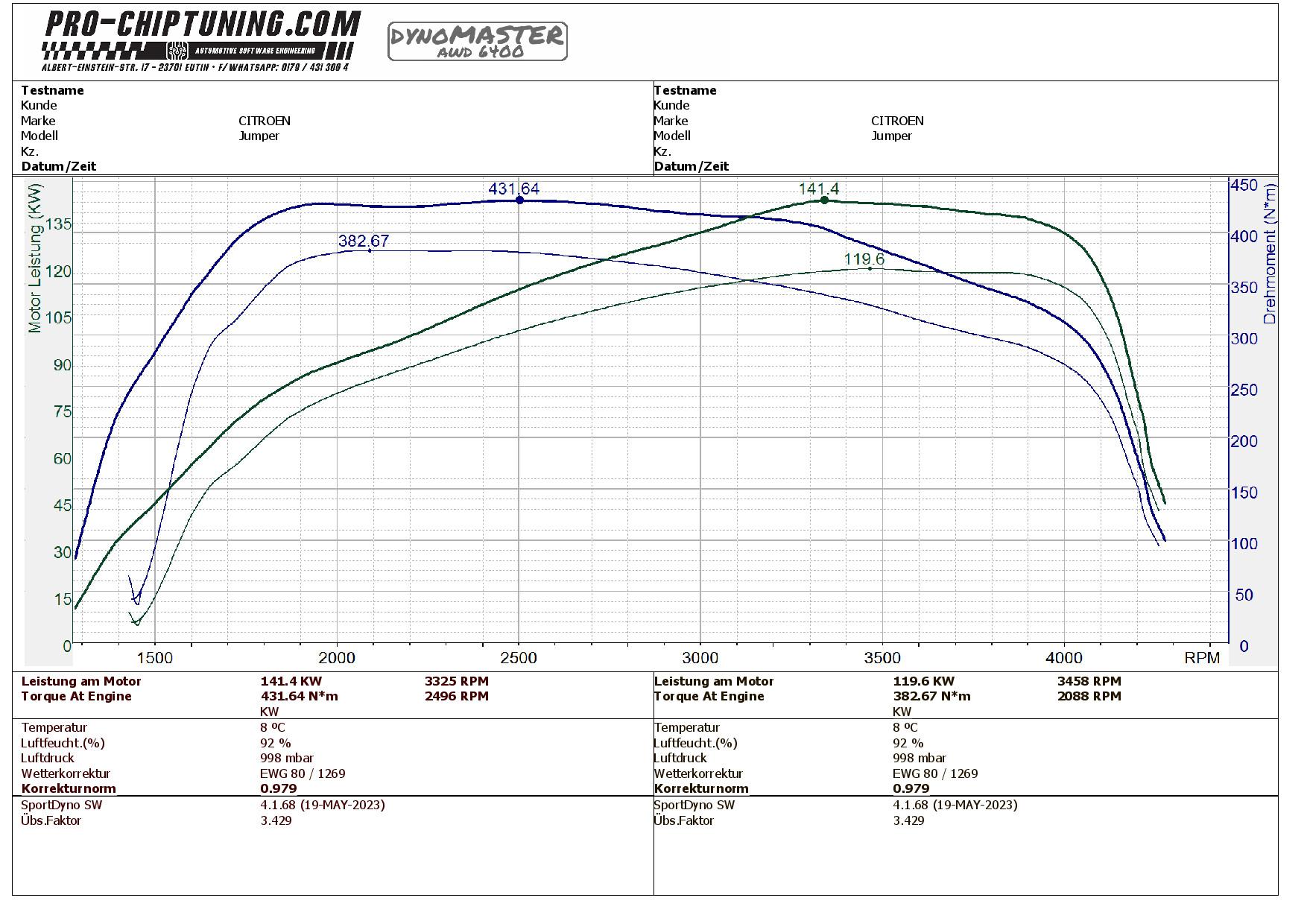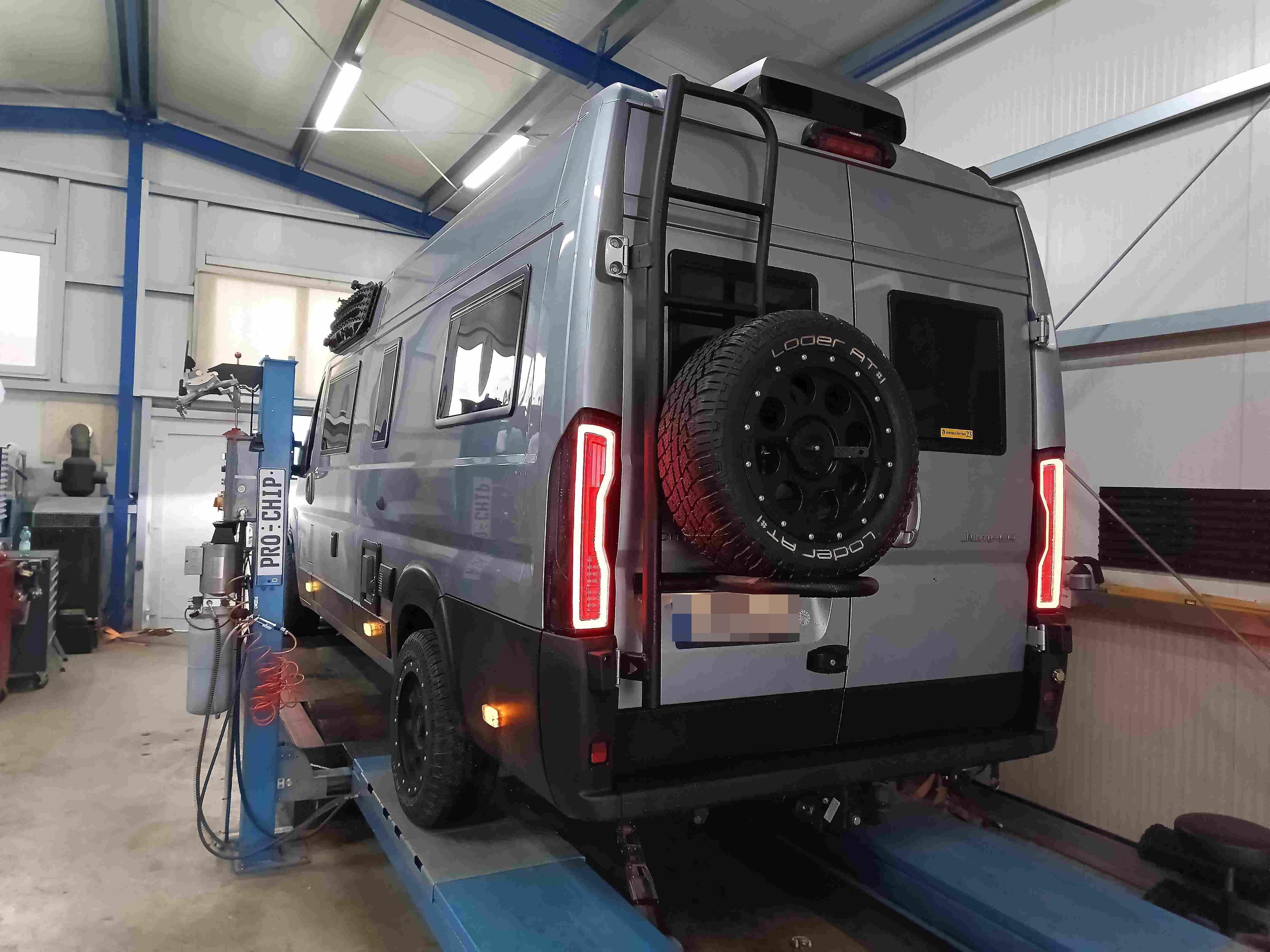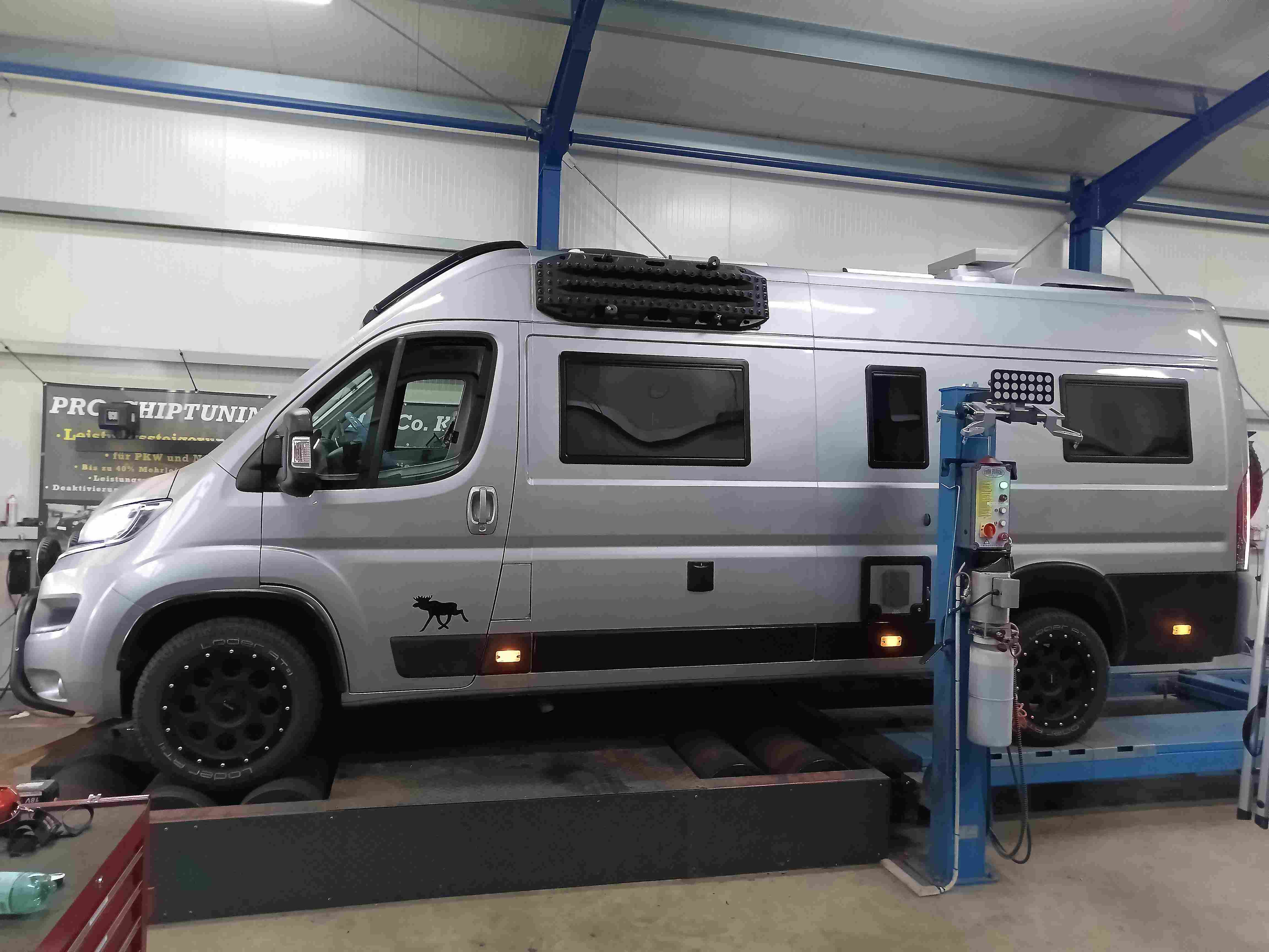 Leistungssteigerung für diesen Citroen Jumper - (Baujahr 2022). Der Motor leistet 165 PS (370 NM Drehmoment) im Serienzustand / Werksangabe. Durch die Geländebereifung ist das Wohnmobil etwas schwach auf der Brust - Da können wir aber Abhilfe schaffen!