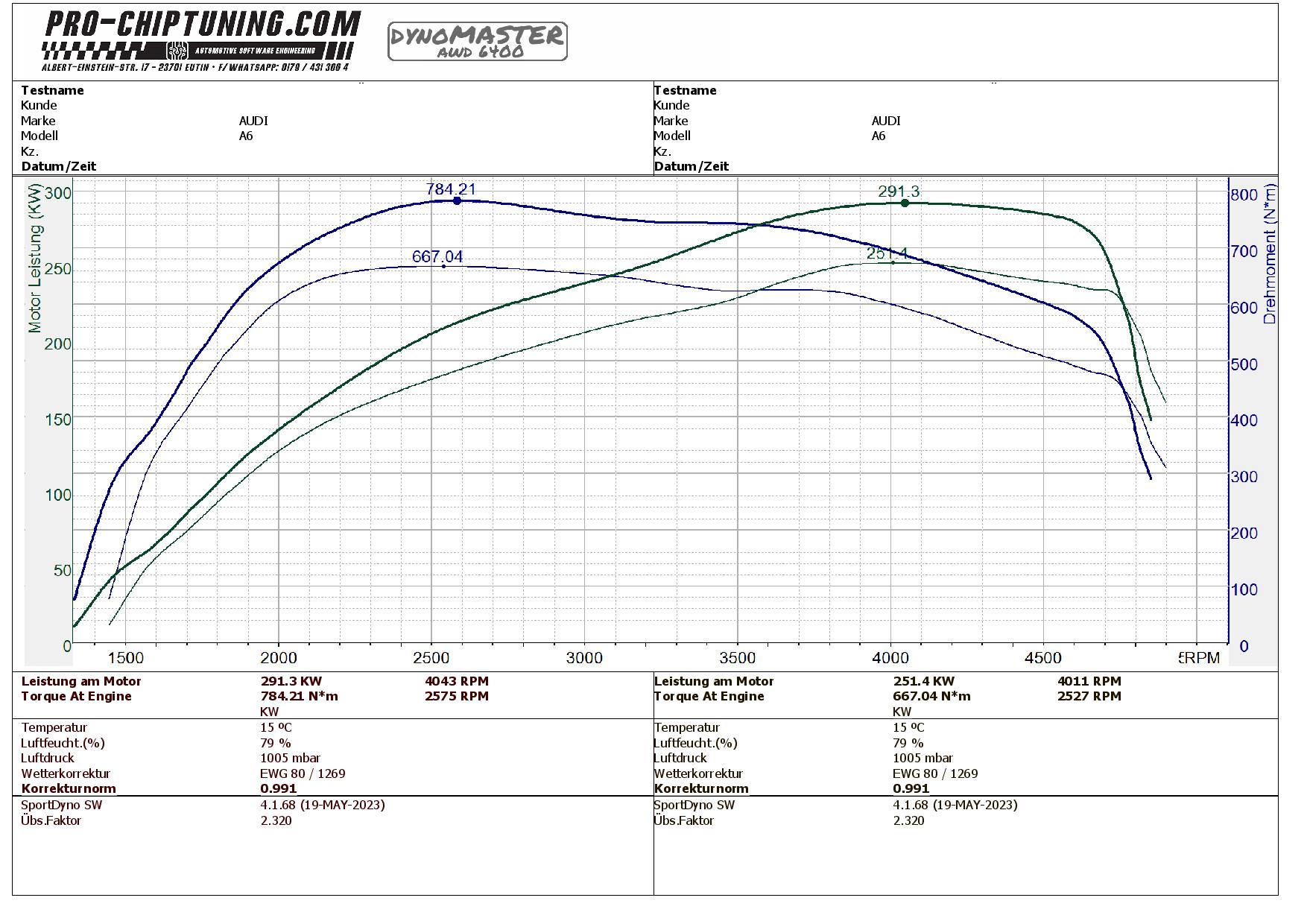 Leistungssteigerung für diesen Audi A6 - (Baujahr 2017). Der CVUB - 3,0 BiTDI Motor leistet 326 PS (650 NM Drehmoment) im Serienzustand / Werksangabe. Durch die Anpassung von Motor- und Getriebesoftware erreichen wir bei diesen Motoren knapp 395PS und fast 800Nm Drehmoment.